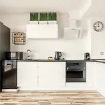 Outre une cafetière/théière, les équipements indépendants de la cuisine équipée comprennent un micro-ondes et un réfrigérateur. L'appartement est à 32 minutes de trajet en voiture de l'aéroport Lech Wałęsa de Gdańsk.